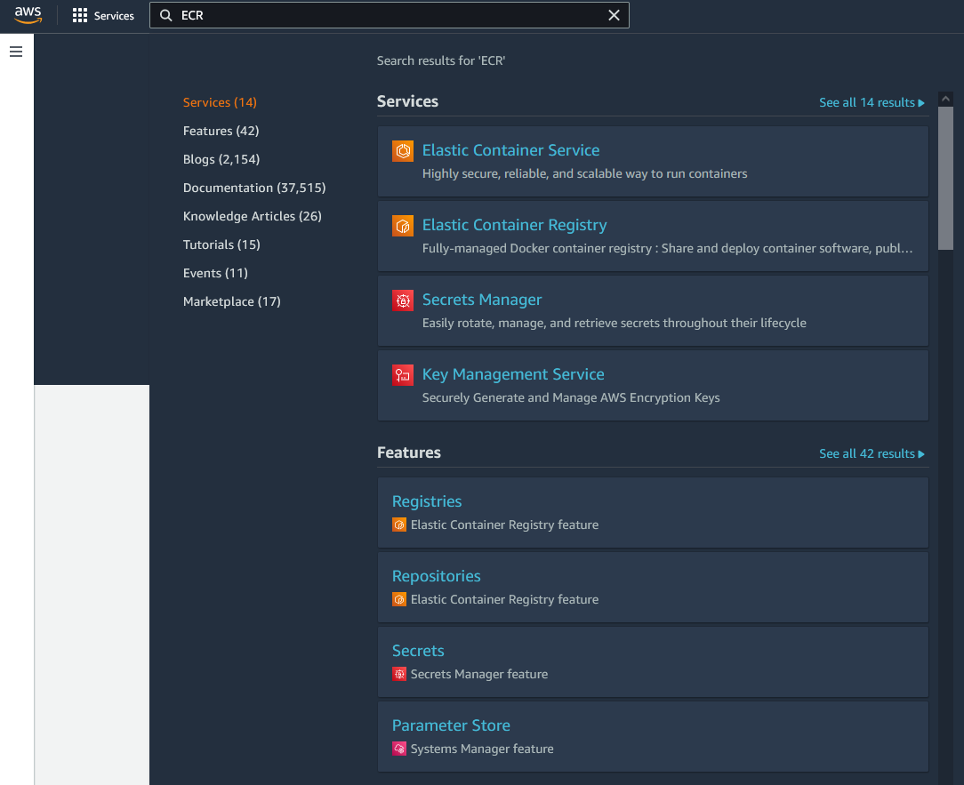 AWS 콘솔에 들어가서 ECR을 검색한 후 들어갑니다.