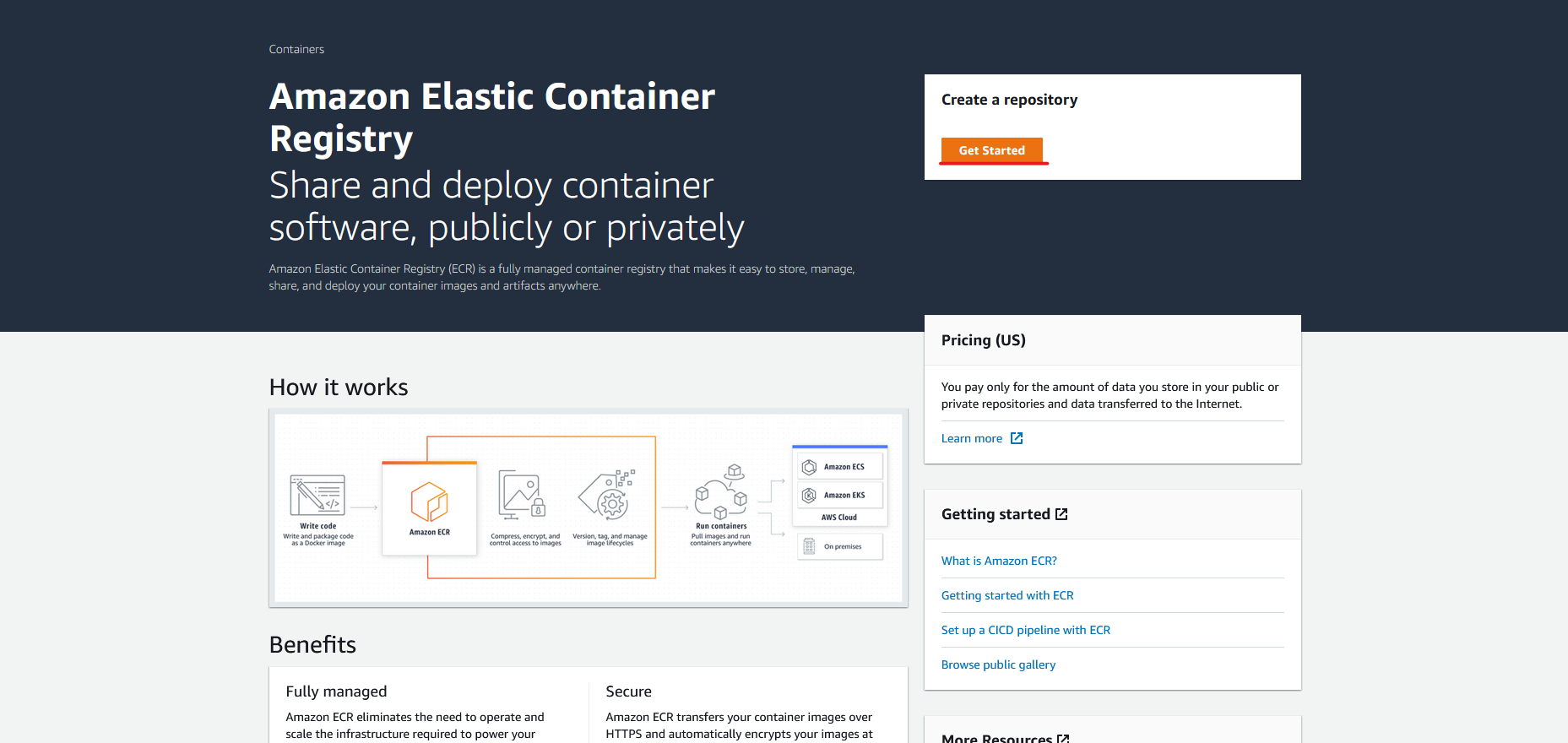 먼저 이미지를 푸쉬할 ECR을 생성해봅시다.