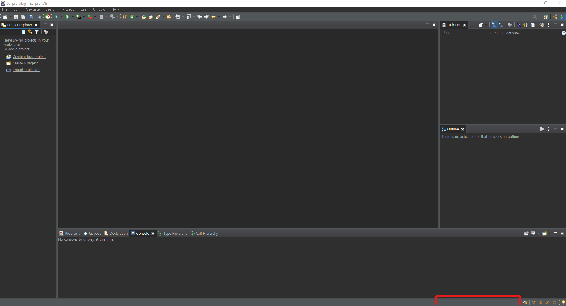 install을 누르셨다면 설치가 진행될껍니다. 빨간색부분에 작은 막대기 하나가 나타날 것인데 100%가 될 때까지 기다려줍니다. 다 되셨다면 Eclipse를 재실행 시켜줍니다.