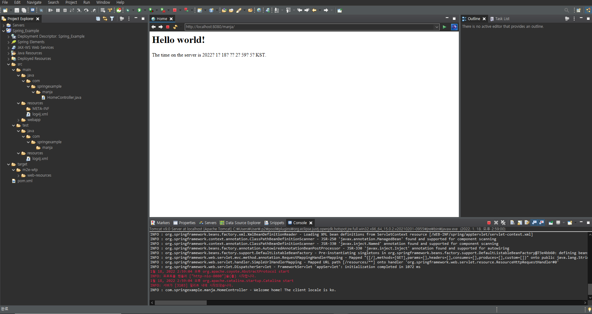 프로젝트를 만들면 기본적으로 제공되는 예제 소스코드가 있습니다. Apache Tomcat을 설치해서 한번 실행시켜 보도록 하겠습니다.