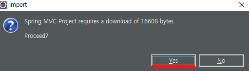 그러면 Spring MVC Project를 다운받겠냐는 다이어그램이 뜹니다.
