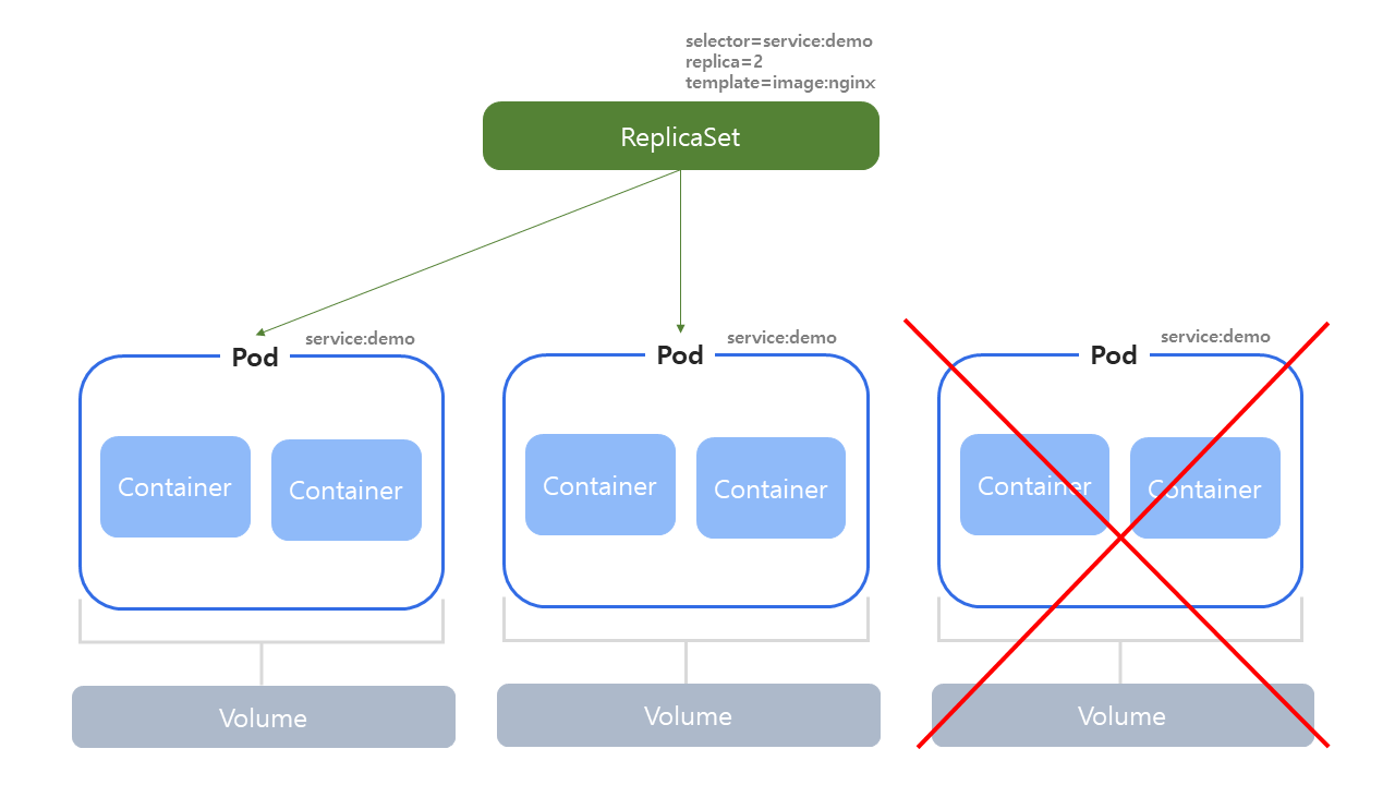 - Replica가 3이면 3개의 Pod만 띄우고, 만약 지정한 Replica 보다 Pod의 수가 많다면 Pod를 삭제하고 적다면 Pod를 추가합니다.