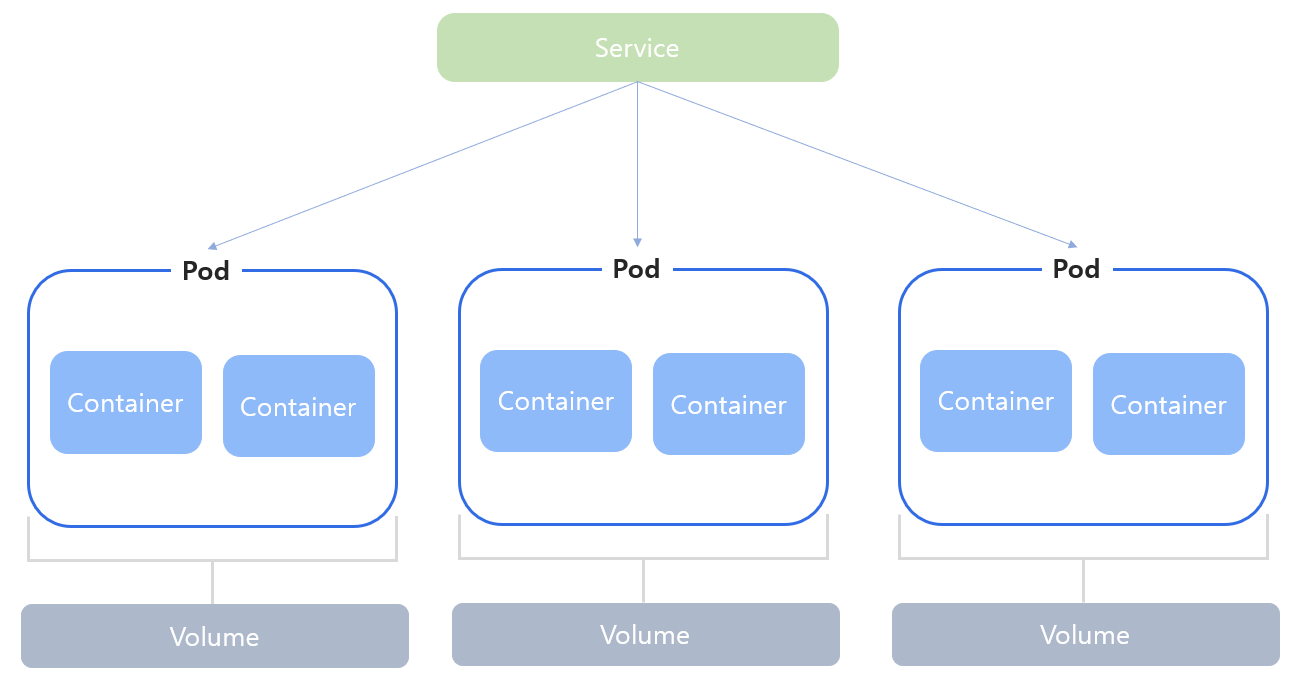 - Pod내의 컨테이너간에는 디스크 볼륨을 공유할 수 있습니다. (파일과 같은 데이터 공유 가능)