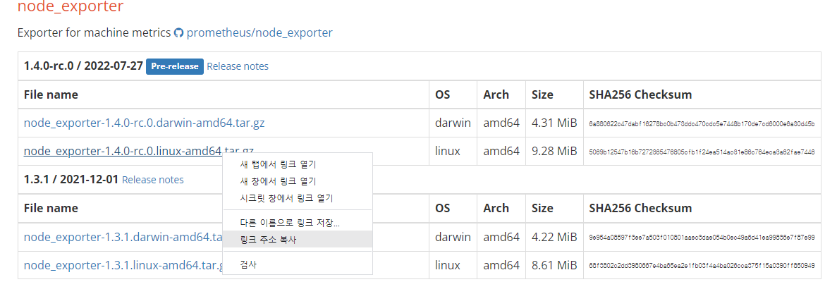 $ wget https://github.com/prometheus/node_exporter/releases/download/v1.4.0-rc.0/node_exporter-1.4.0-rc.0.linux-amd64.tar.gz