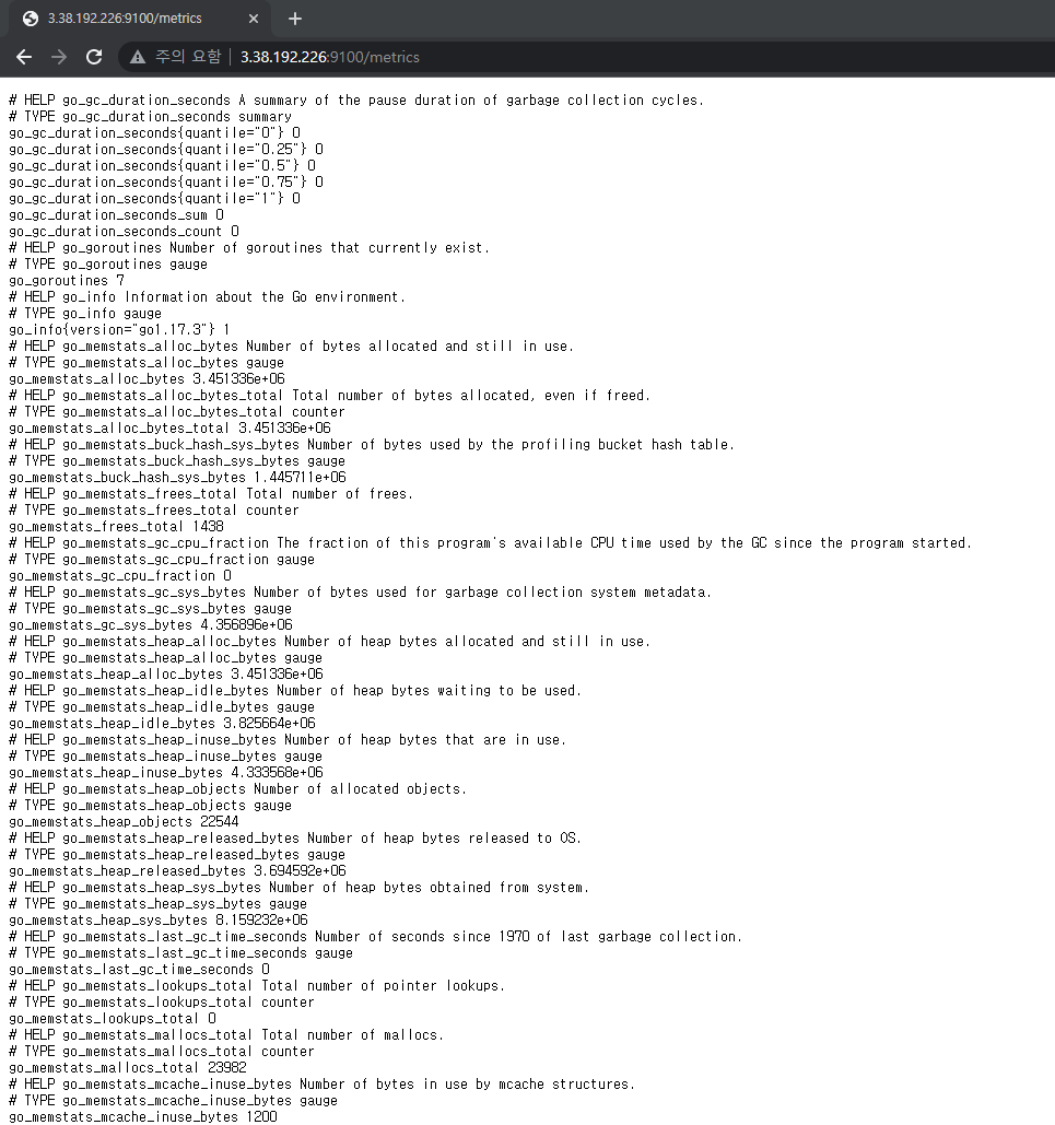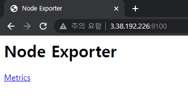 Node Exporter가 실행 중인 서버의 9100 포트로 접속합니다.