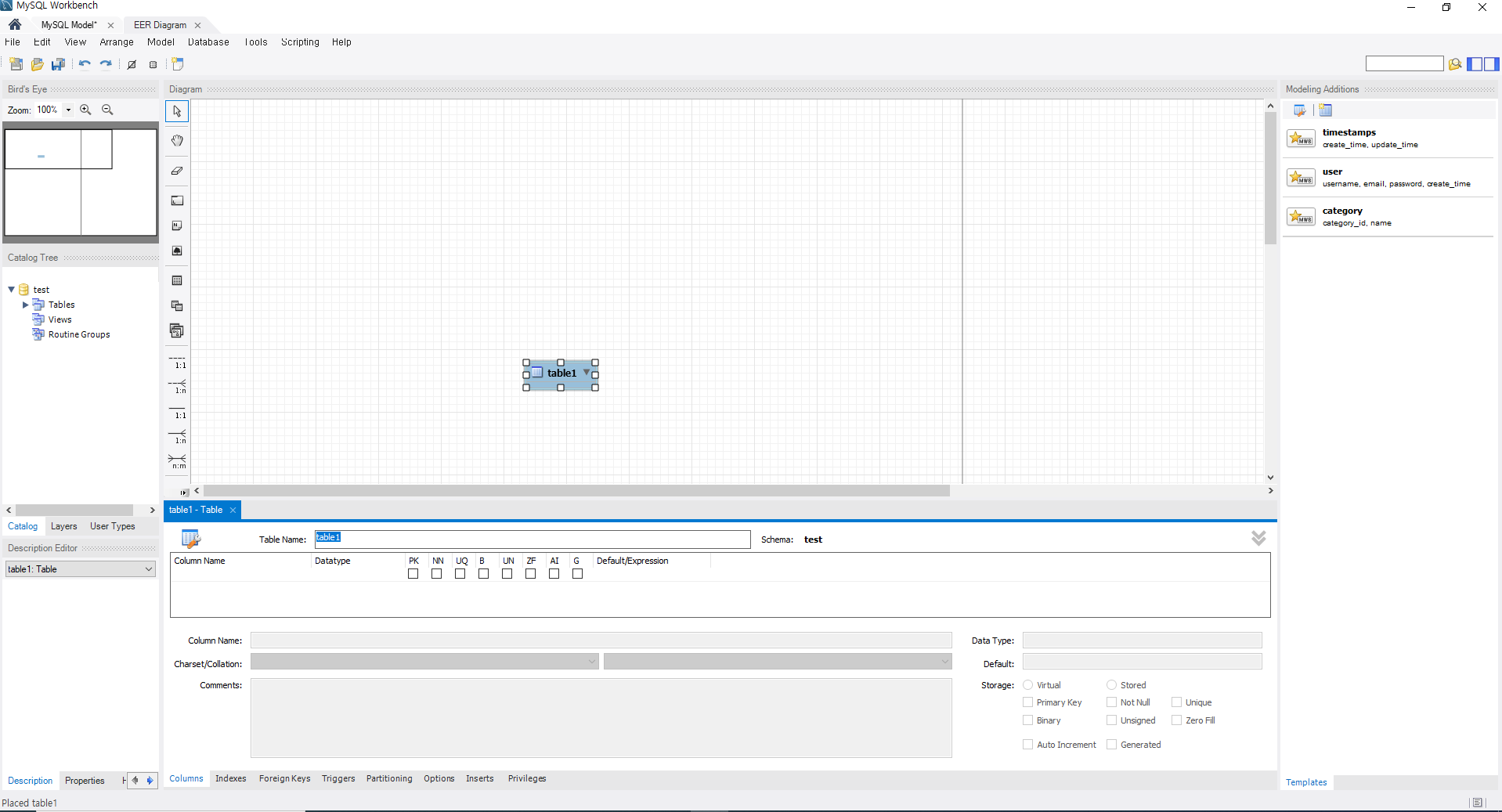 파란색부분을 더블클릭하면 db의 이름을 바꿀 수 있다. 여기서는 db이름을 test로 지어주도록 하겠다.