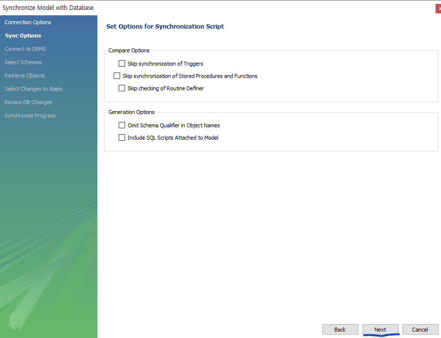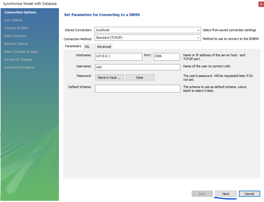db 선택후 next 클릭
