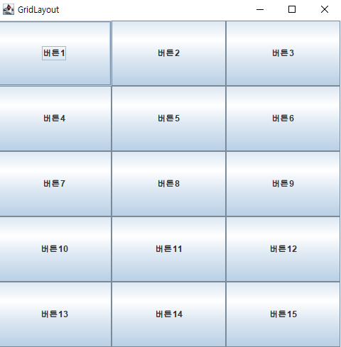 | GridLayout | 컴포넌트들을 행과 열로 배치한다. 컴포넌트의 크기는 컨테이너의 크기에 자동으로 맞춰진다. |
